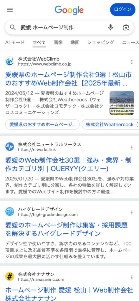 この度、2025年10月21日時点でハイグレードデザインは「愛媛 ホームページ制作」というキーワードにおいて、制作業者の中で検索順位1位を獲得いたしました。